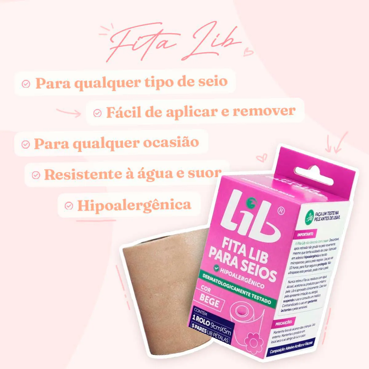 Fita Lib para Seios 1 rolo 9cm x 5m + 5 pares Lib Pétalas